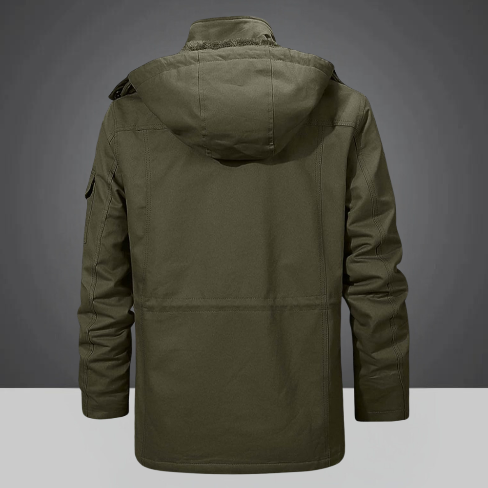 1. Isoleret Hætte: Jakken er udstyret med en hætte, som giver ekstra varme og beskyttelse mod kolde vinde, ideel til barske vejrforhold.