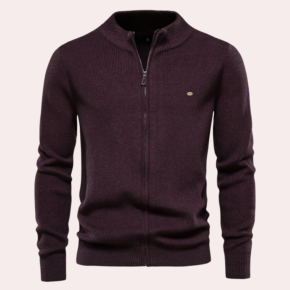 Afslappet strikket herresweater med lynlås