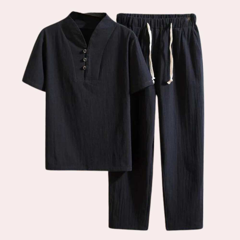 Leder du efter et lækkert sæt tøj, som du kan have på denne sommer? Dette Vitus Komfortabelt og stilfuldt sommersæt til mænd er perfekt til det. Et flot, luftigt sæt, der får dig til at se super stilfuld ud. Et behageligt outfit til enhver lejlighed
