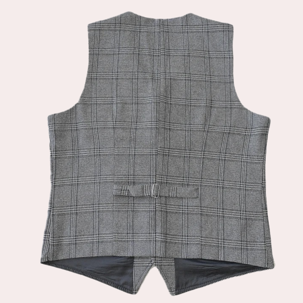 Vintage-looket på denne ternede vest bringer et strejf af nostalgi til moderne herremode. Den er perfekt til alle, der værdsætter individuel stil. En tøjdel, der kombinerer historie og modernitet.